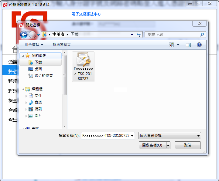 按「確定匯出」之後,選擇存檔的所在位置,請妥善保管您的憑證。