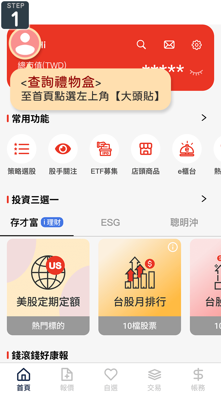 專屬好禮不漏接!好富投APP把贈品全都裝進禮物盒,贈品資訊、使用狀態完整呈現,一鍵完成領取直覺又方便!