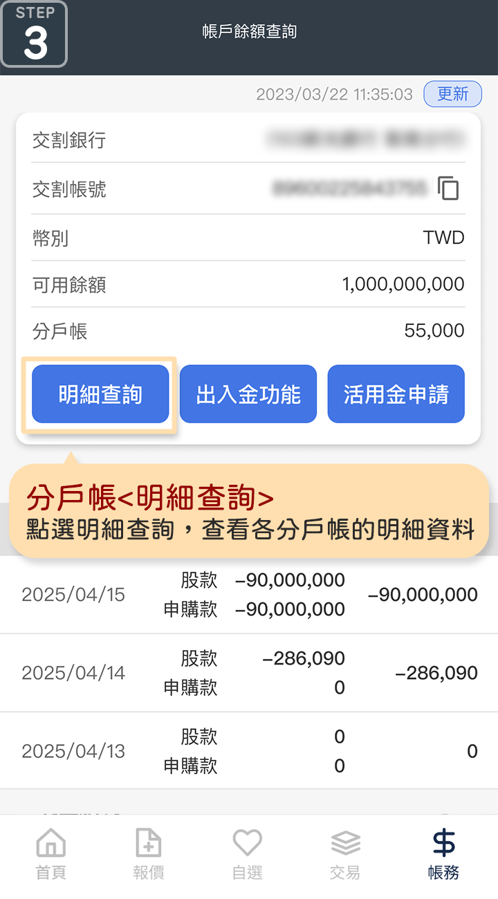 好富投APP帳戶餘額查詢功能全面升級!分戶帳 / 銀行出入金操作整合至帳務系統,新增分戶帳明細查詢,資金流向即時掌握。近三日交割款顯示欄位更清晰,資訊呈現更精準,讓您快速掌握帳務狀況!